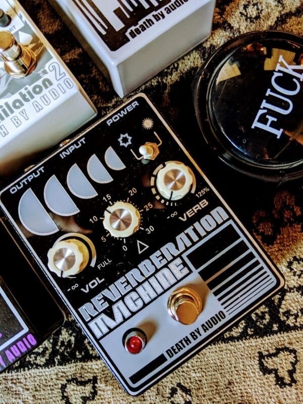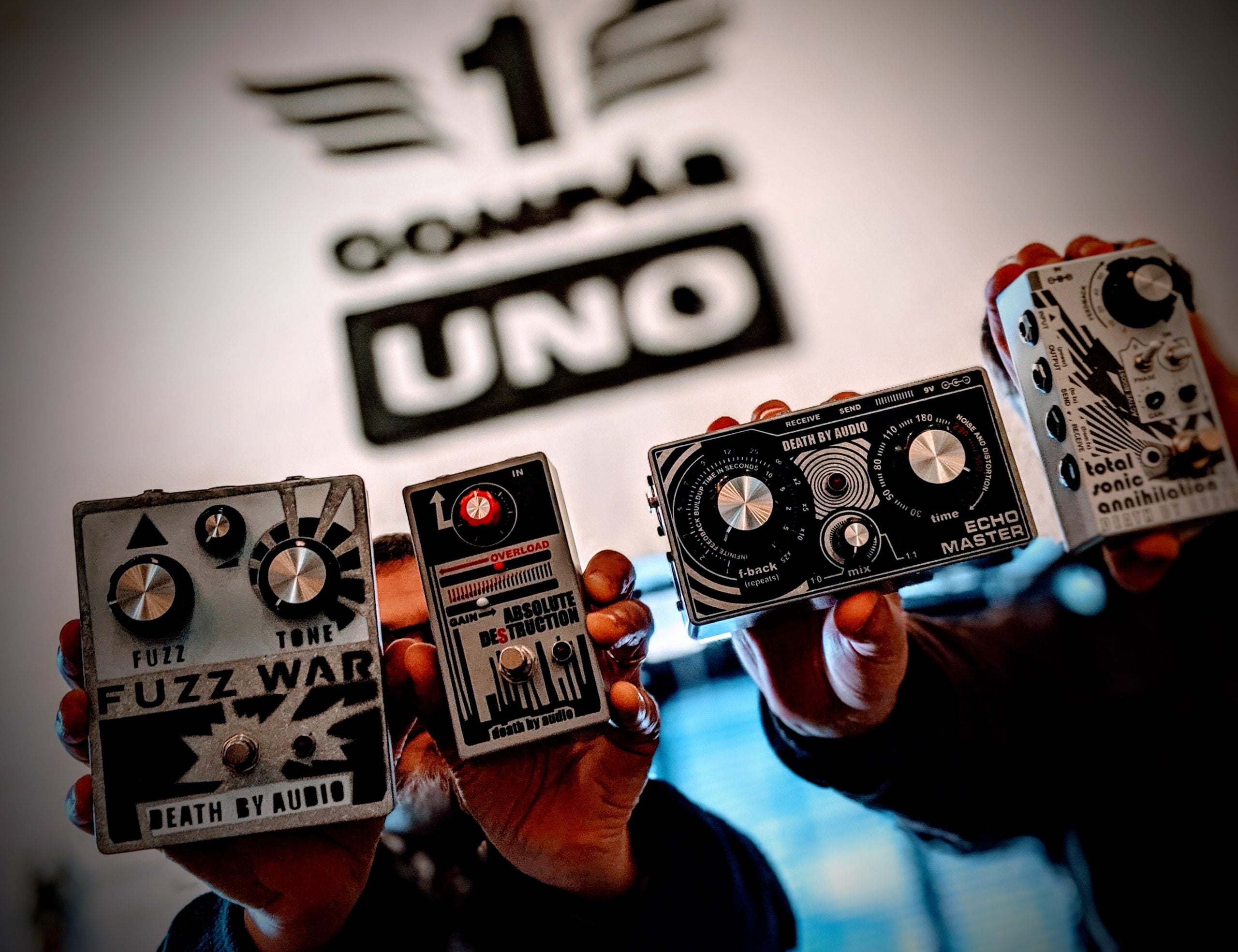 El objetivo en Death By Audio es inspirar. A Oliver le gusta decir; «Ve a poner algo de música ahora mismo. Escucha cómo se transforma tu sonido a través de uno de estos pedales de efectos. Coloca el instrumento boca abajo y tócalo con la otra mano. Pega con cinta adhesiva un micrófono a tu cabeza. Busca sonidos frescos e interesantes para hacer algo nuevo en el mundo».