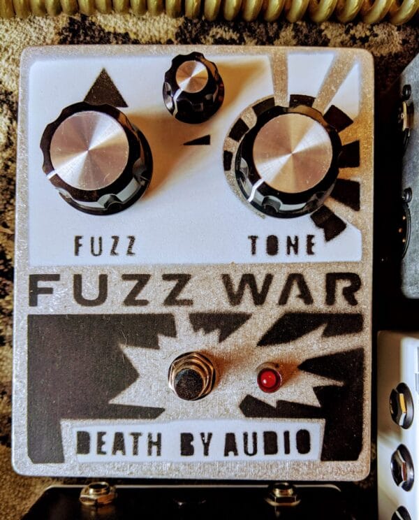 A todos nos encanta realmente esta Guerra de Fuzz. Llamen al Ejército, a la Marina, a Scotland Yard, a tu vieja y a los Mario Brothers del barrio! Necesitarás toda la ayuda que puedas conseguir para evitar que esta interminable pared de Fuzz se enfurezca! Este circuito aniquila a todos los circuitos y explota la distorsión más malvada, desagradable e insana para convertirse en la regla del universo del Fuzz. Este pedal tiene un grafity pintado a mano en spray que cubre los componentes carnosos y el sonido, dándote un mutilador de alta tecnología a un precio de punk rock. Con tres perillas puede crear una multitud de sonidos de fuzz, boost, overdrive y distorsión. Este es el pedal de sustain más grueso que se haya escuchado.