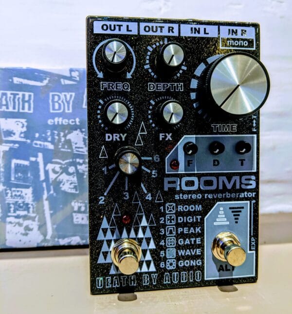ROOMS es una reverb digital multifunción estéreo capaz de generar un volumen abrasador, paredes cerradas de sonido y ambientes reverberantes prolongados y arrastrados con una gama intuitiva de controles diseñados pensando en la alteración del estado de ánimo en vivo. ROOMS fue diseñado con los más altos estándares de flexibilidad y fidelidad de audio. Una sección de mezclador con calidad de estudio proporciona controles DRY y FX independientes sobre seis algoritmos de reverberación meticulosamente programados; Room, Digit, Peak, Gate, Wave y Gong.