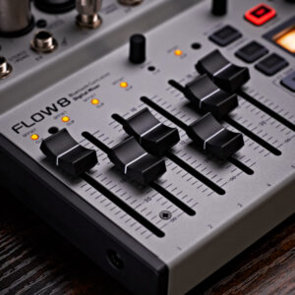 Flow 8 tiene dos preamps de micrófono Midas y un procesamiento 32 VFP-Processing, EQ paramétrico de 4-bandas para cada canal, 2 FX y 2 envíos de monitor, con un limitador para los buses principales para prevenir picos de volumen inesperados en tus parlantes, incluyendo dos motores de efectos independientes con 16 presets cada uno, 12 programas de reverb con tiempo de decay editable y múltiples efectos de modulación y delay.