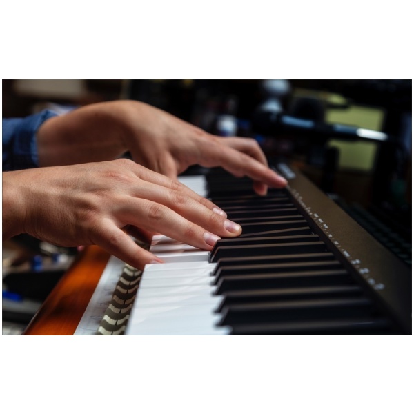 Controlador teclado de 61 teclas sensitivas de acción natural con conectividad MIDI-USB