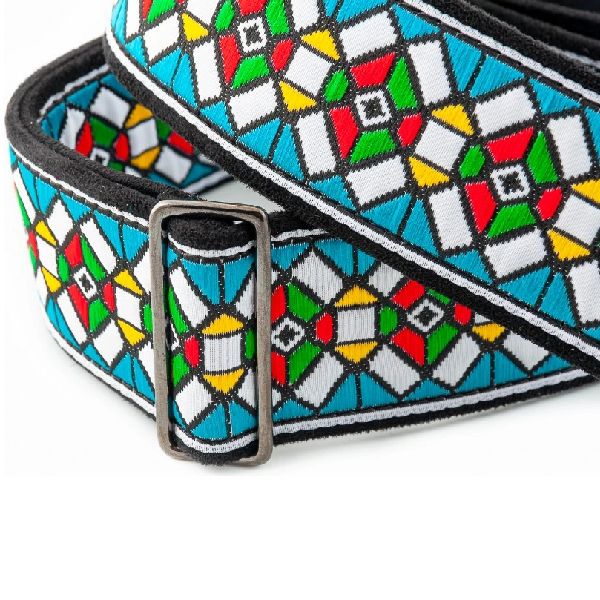 Réplica de los diseños originales de las correas utilizadas por muchos artistas icónicos durante los años 60 y 70. Esta correa, conocida también como Stained Glass Strap, fue usada por leyendas como Jimi Hendrix, Jimmy Page, Bob Dylan, John Lennon, Eric Clapton, Elvis Presley, entre muchos otros.