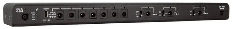 El Canvas Power HP Plus cuenta con 7 salidas de alimentación aisladas que suministran hasta 500 mA de energía limpia a 9 V, y dos salidas aisladas de 3 A con selección de 9 o 12 V. También se incluyen varios cables de polaridad inversa y estándar de 2,1 mm y 2,5 mm. Consulte los detalles a continuación.