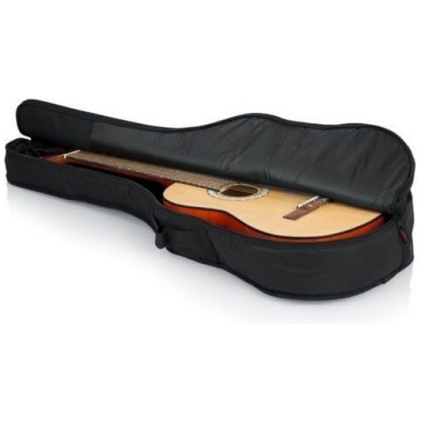 La funda liviana de Gator para guitarras clásicas (GBE-CLASSIC) ofrece la protección rudimentaria de una funda de caparazón blando, así como la durabilidad de un estuche Gator. El exterior de nailon es resistente a rasgaduras y humedad, mientras que el cierre de cremallera lateral de servicio pesado de arriba a abajo permite una fácil carga y descarga. En el interior, el acolchado de espuma de 10 mm proporciona una protección adicional. Un solo bolsillo exterior con cremallera ofrece un amplio espacio para sus cuerdas de guitarra, púas y accesorios favoritos. Mantenga su guitarra clásica segura con la funda liviana Gator GBE-CLASSIC.