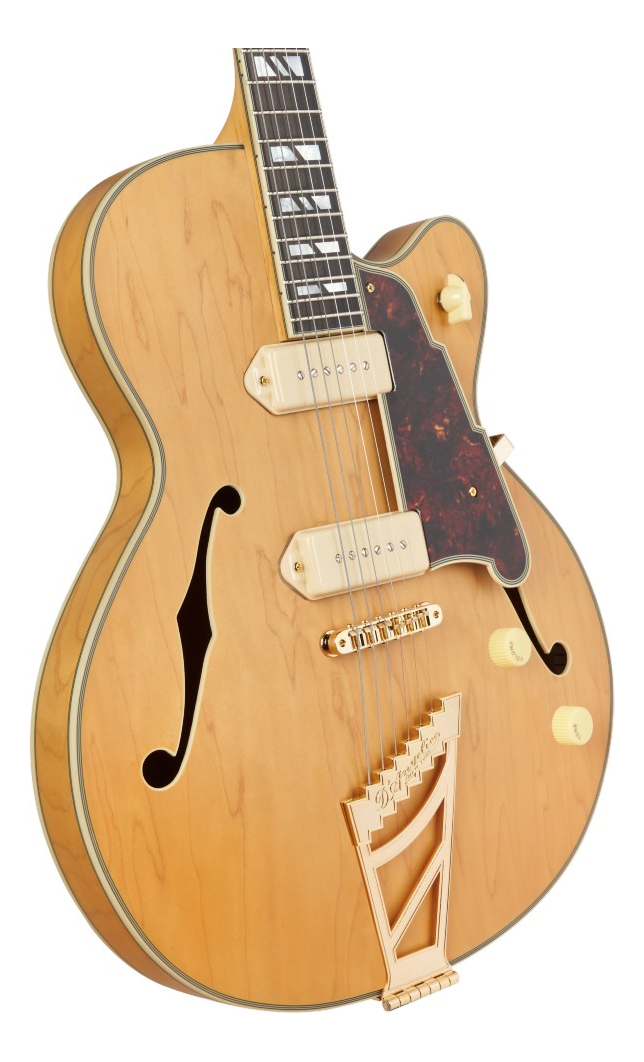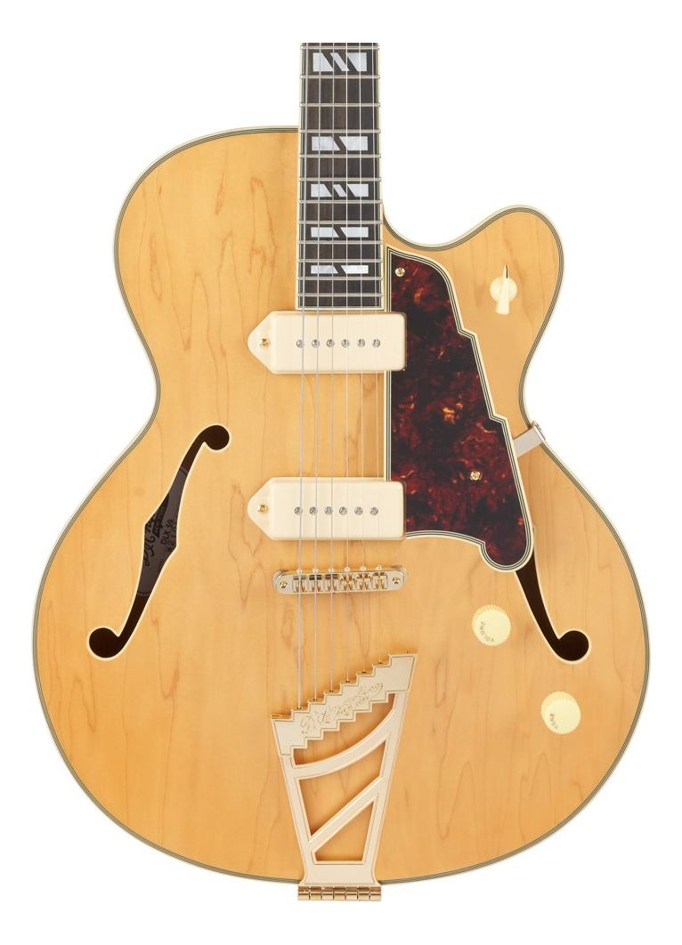 La nueva Deluxe 59, que se suma a la serie Deluxe por primera vez desde su rediseño, combina el diseño de la vieja escuela con un toque moderno. La 59, un cuerpo hueco completo de 16 pulgadas de ancho y poco menos de dos pulgadas de profundidad, ofrece un tono amaderado y articulado, brillantemente magnificado por las nuevas pastillas Seymour Duncan D’Angelico Great Dane P90, un conjunto de pastillas notablemente versátil y vívido. La comodidad del músico está garantizada gracias a un excelente equilibrio del cuerpo, un mástil delgado en forma de C y trastes 47104 de primera calidad de Jescar. Los acabados satinados semitransparentes sobre una variedad de maderas naturales del cuerpo mantienen a la 59 en el espíritu del año que le da nombre, mientras que el adorno estético justo y el ajuste y el acabado excelentes ilustran su modernidad.