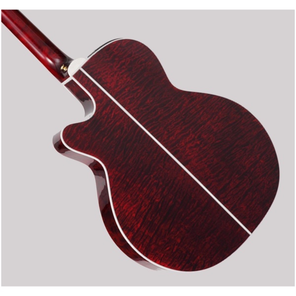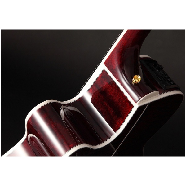 Con un diseño de formato NEX (jumbo reducido) y corte de estilo veneciano, el instrumento se encuentra listo para cualquier situación, incorporando una caja de alta resonancia acústica con tapa sólida de abeto y cuerpo de maple flameado, mástil de maple y diapasón de rosewood radio 12¨. El perfil delgado del mismo provee de una respuesta de toque ergonómica y ágil para todo tipo de manos y estilos musicales.