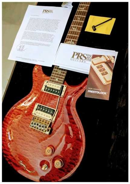 – Equipada con un sistema de tremolo original de bronce hecho por PRS y las clavijas son mini cerradas con un sistema de traba.