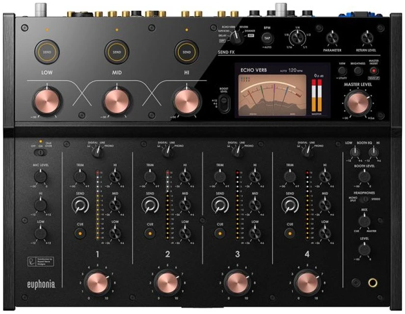 Todo el sonido que sale de la Euphonia pasa a través de un circuito transformador diseñado conjuntamente por AlphaTheta y Rupert Neve Designs, los legendarios creadores de excepcionales circuitos de audio analógico y mesas de mezclas veneradas por artistas e ingenieros de sonido de todo el mundo.
