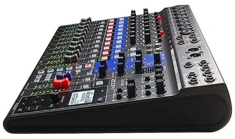 | Conectores | 5 monitor phone jack 6.3 mm out, 1 monitor jack L/R 6.3 mm out, 1 host USB, 1 main XLR L/R out, 1 interface USB in-out, 1 SD-SDHC-SDXC, 2 line TS L-mono/R 6.3 mm in, 1 control jack 6.3 mm in, 8 combo XLR/TRS 6.3 mm in, 2 line RCA L/R in |