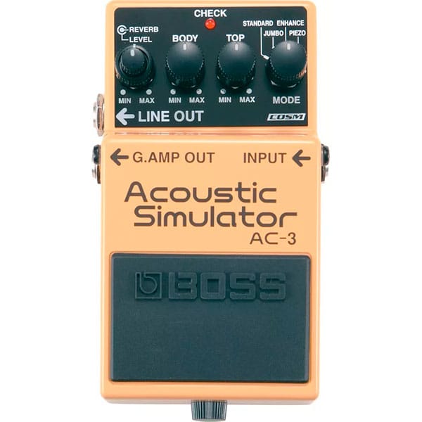 Acoustic Simulator emplea una tecnología de última generación BOSS-COSM para transformar cualquier guitarra eléctrica en una variedad de hermosas guitarras acústicas, incorporando cuatro modos de sonidos basados en distintos formatos de acústica y tipos de captación, controles dedicados de EQ y un efecto Reverb integrado.
