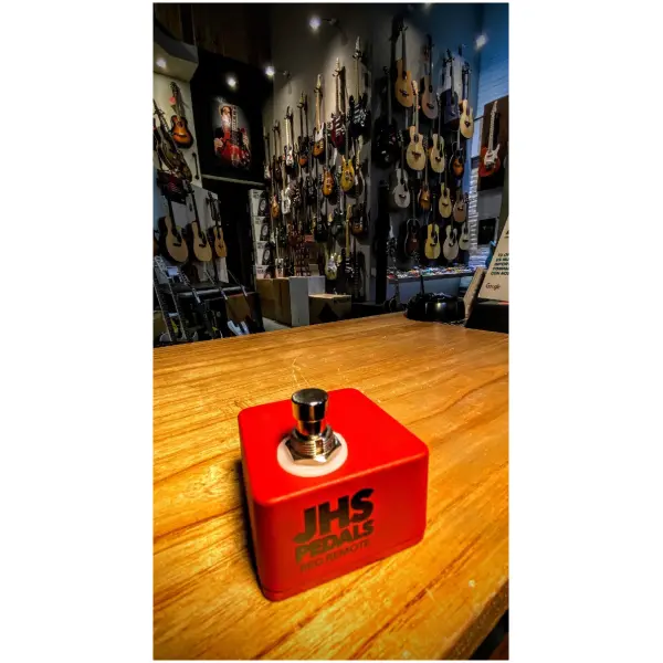 El interruptor de pedal JHS Red Remote es una herramienta increíblemente poderosa para desbloquear todo el potencial manos libres de muchos de sus pedales de efectos JHS favoritos. Utilizando un cable de conexión de instrumento estándar de 1/4″, simplemente conecte el control remoto rojo en el conector de entrada correspondiente de su pedal Morning Glory, Super Bolt o Twin Twelve para activar el interruptor mini-switch integrado de cada pedal con el pie. Y una de las características más atractivas del nuevo ‘’control remoto’’ rojo de JHS es su tamaño compacto, que permite colocarlo en prácticamente cualquier configuración de pedalboard.
