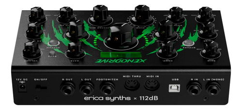 Una unidad de efectos estéreo única de distorsión/overdrive/waveshaper con un algoritmo desarrollado por 112db y Erica Synths, el Xenodrive es una herramienta práctica para moldear tus sonidos en el estudio o en directo, desde una mejora armónica sutil hasta una destrucción sonora total. Con 12 parámetros para un diseño de sonido detallado, funciones de guardado/recuperación para todos los parámetros, control MIDI sobre todos los parámetros y una elegante carcasa de aluminio a juego con nuestra línea de unidades compactas de escritorio, el Xenodrive elevará tu sonido en cualquier directo, estudio o experimento sonoro.